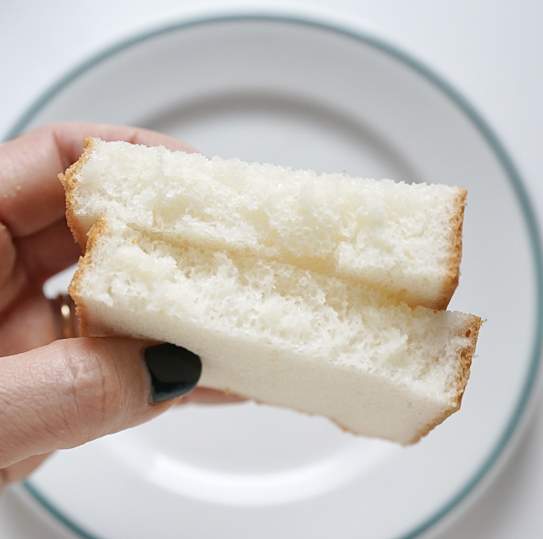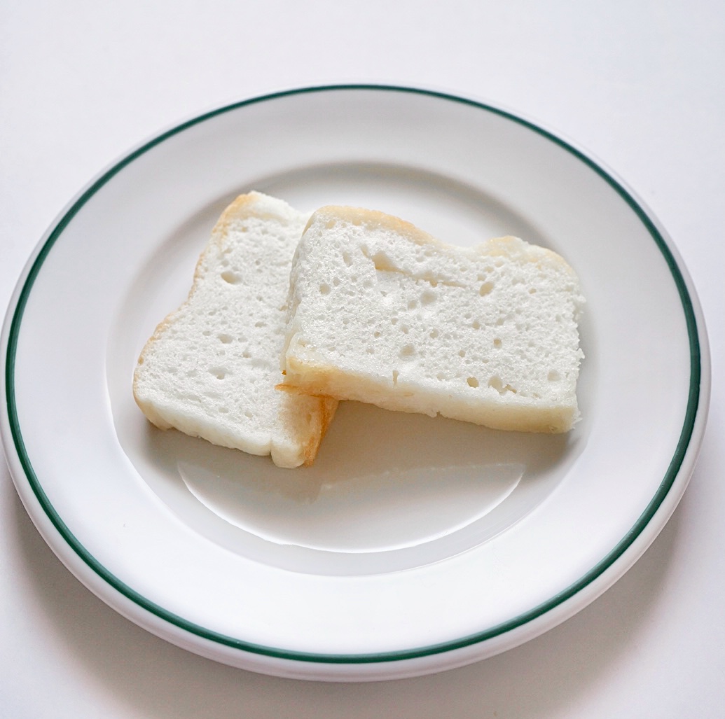 米粉パンにありがちなズッシリもっちりタイプではなく、ふわっと系。レンチンだけで食べられ、ふわふわめできめ細かい米粉を感じられる。焼くとより食パンに近くなるので食パンの代替として探している人に特におすすめ。子供にも食べやすいサイズと風味。